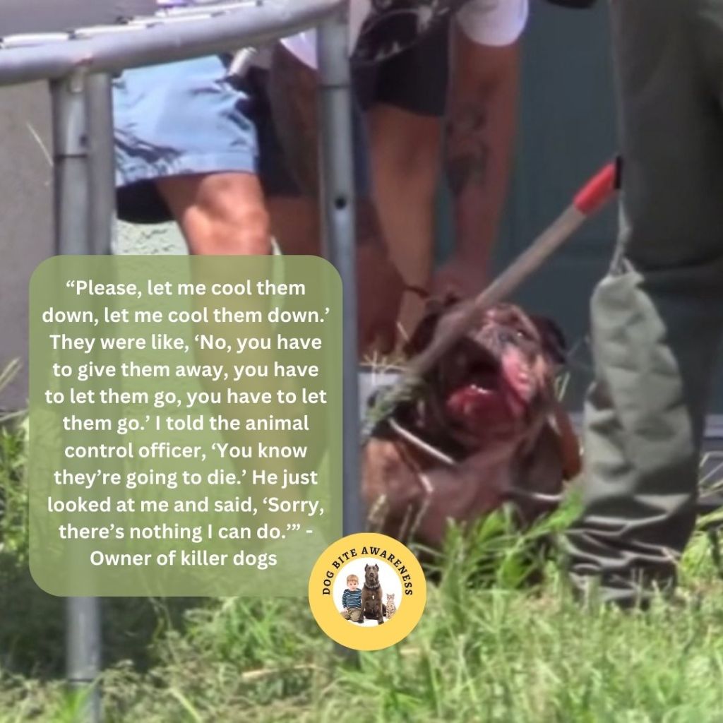 - The dogs were at their home with a secondary owner or dog sitter. (She is the one you hear screaming for the dogs as they are non lethally subdued by police.) So their dogs escaped, mauled a man to death, bit other people. Are back at home covered in blood. And we have cries for the dogs.