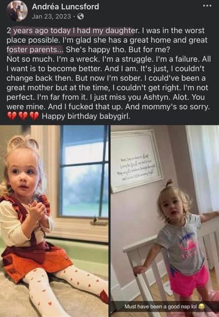 This mom, Andrea, had her first child 🧒 removed and placed with foster parents roughly 2 years ago.
