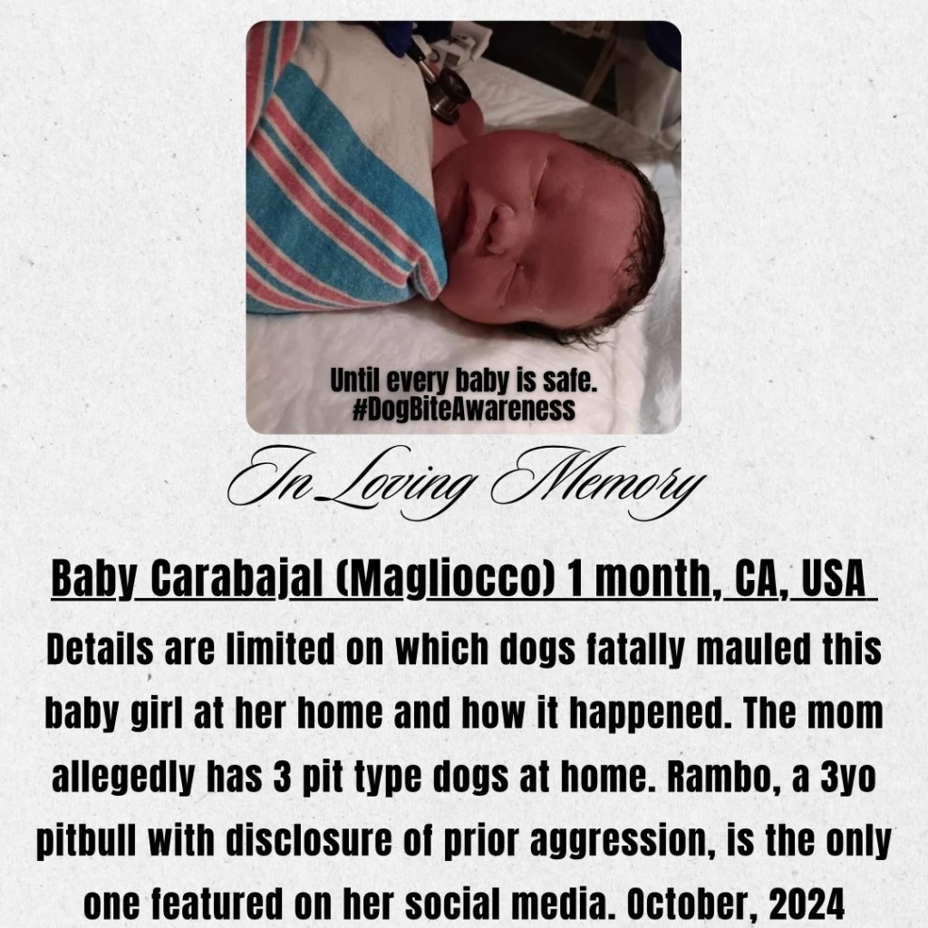 Another baby has succumbed to a dog mauling during Pitbull Awareness Month. 💔 The one month old baby girl born of Torrance, California was not identified in the news or by the biological parents as of the time of publication. 🚩