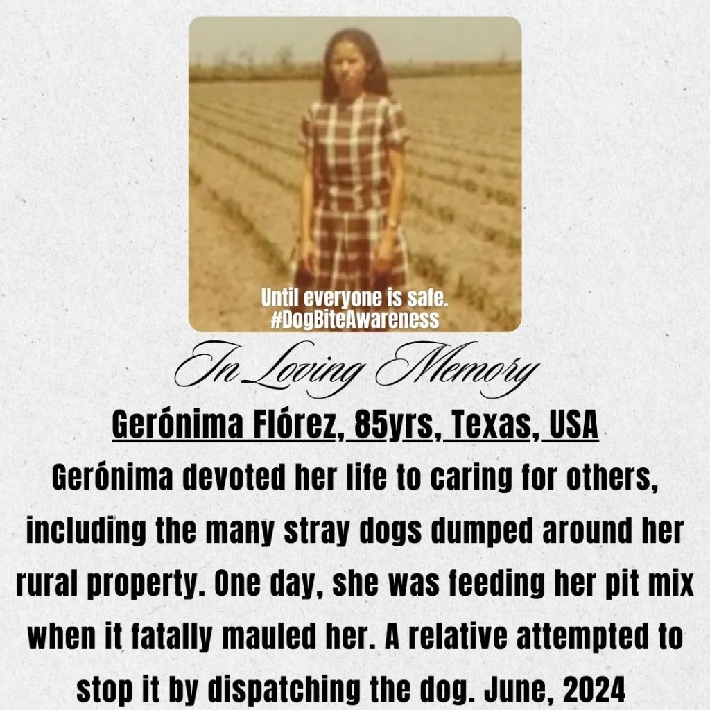 On that fateful day, June 21, 2024, Gerรณnima went outside to feed two regulars that she considered more her own pets. She was fatally mauled. A relative tried to save her by dispatching one of the dogs, but she passed away from her injuries. The dog was described as a pitbull or pit mix in various reports and dispatch logs.