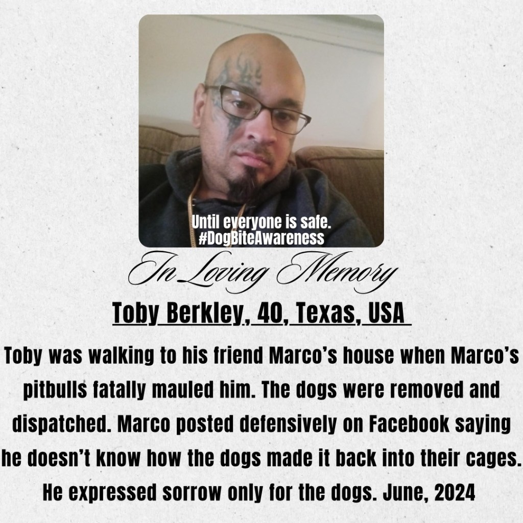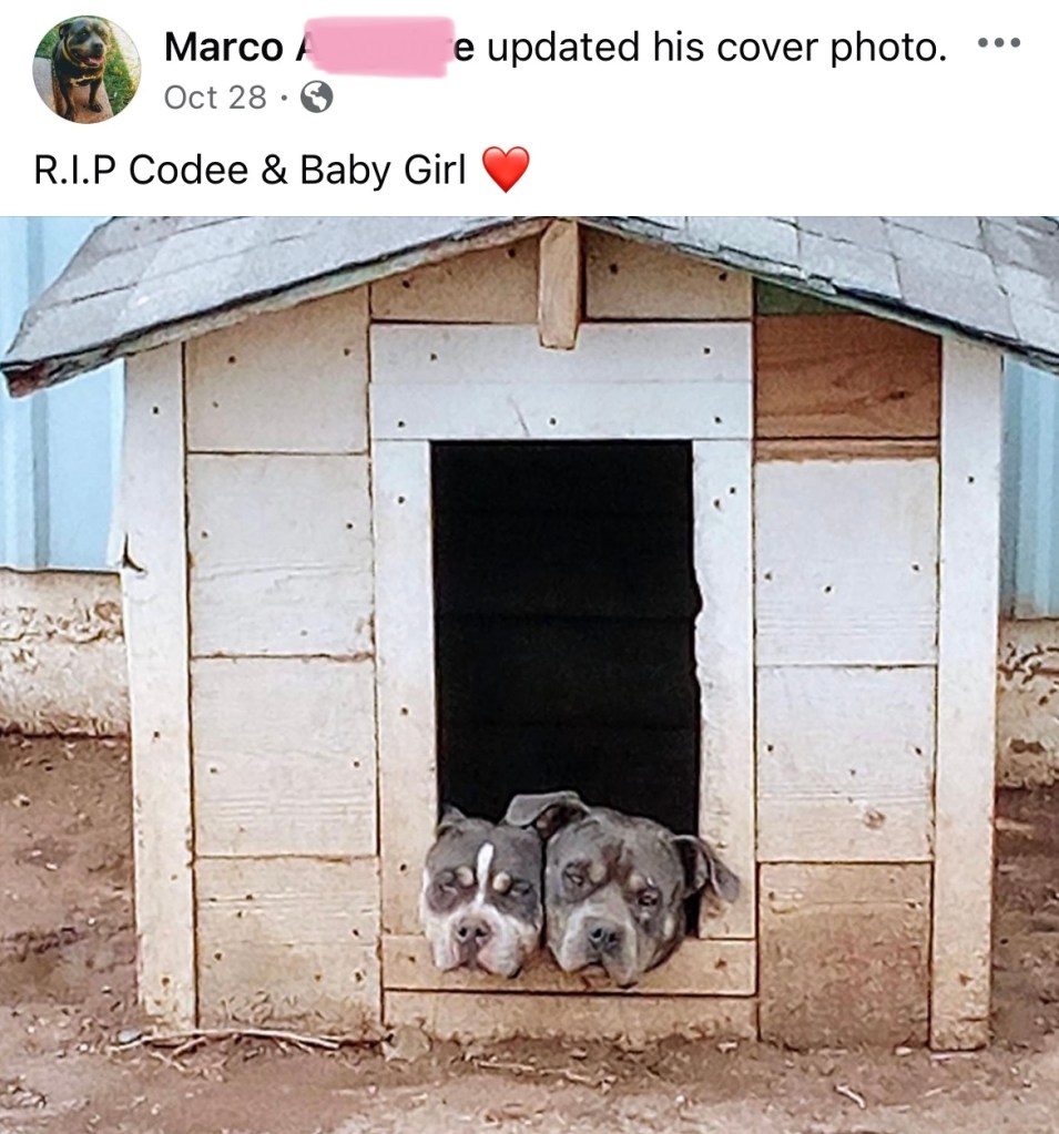 Marco did not, however, remove his memorial posts for his attacking dogs. We see this behavior from almost every pitbull owner after a mauling or fatality. They display more concern for the attacking dogs than the victims. It’s a nearly guaranteed trait in the pitbull lobbying community.