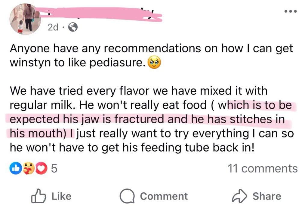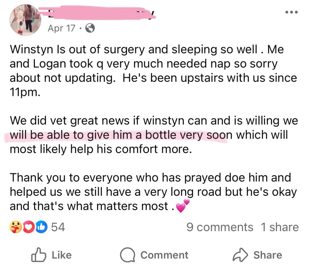 He will now need repeated reconstructive surgeries as he grows. And has already undergone multiple surgeries since his initial stabilization. It was a miracle just to get him onto a bottle in the hospital. 🏥