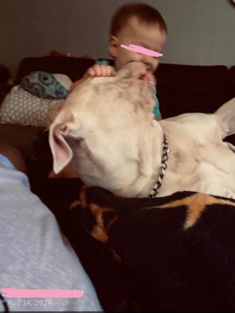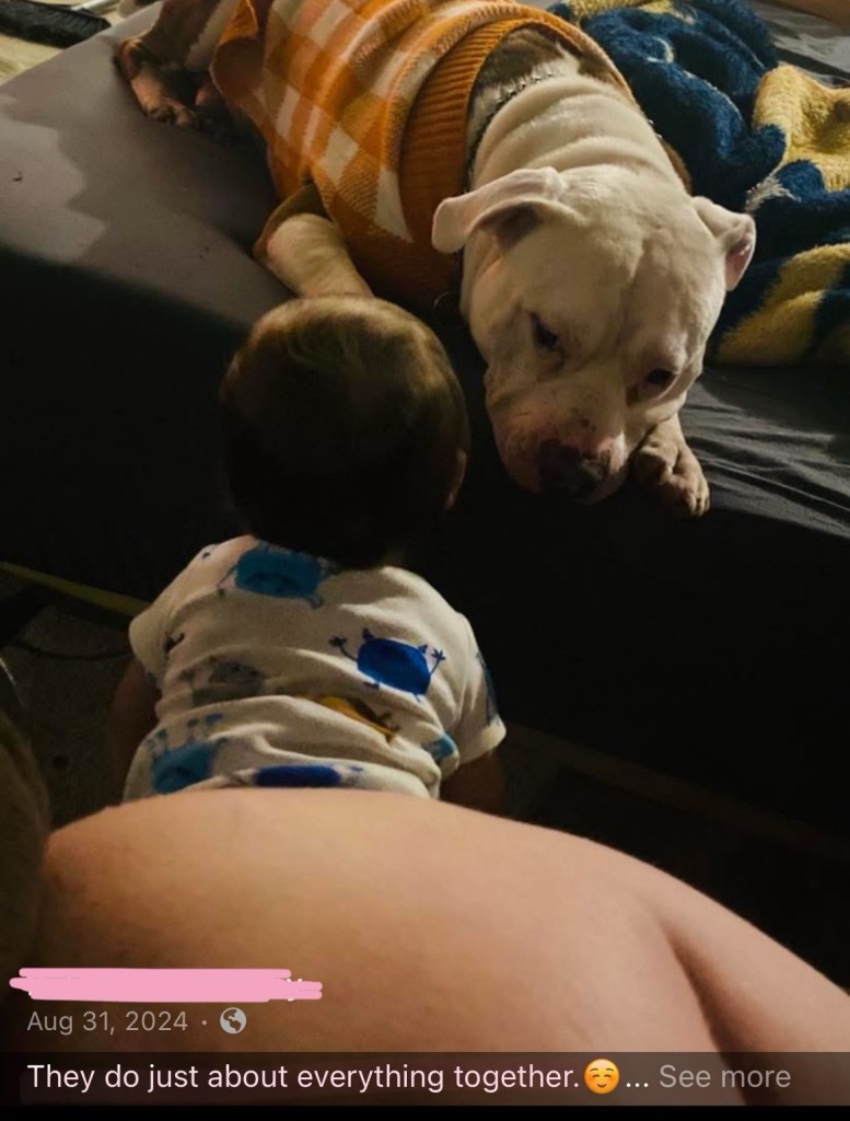 This is Baby Winstyn. He grew up with a beloved pitbull as a family pet. ♥️ Side by side, they explored the world together. Winstyn was protected and loved by his furry friend. His mom supervised them together and was within arm’s reach.