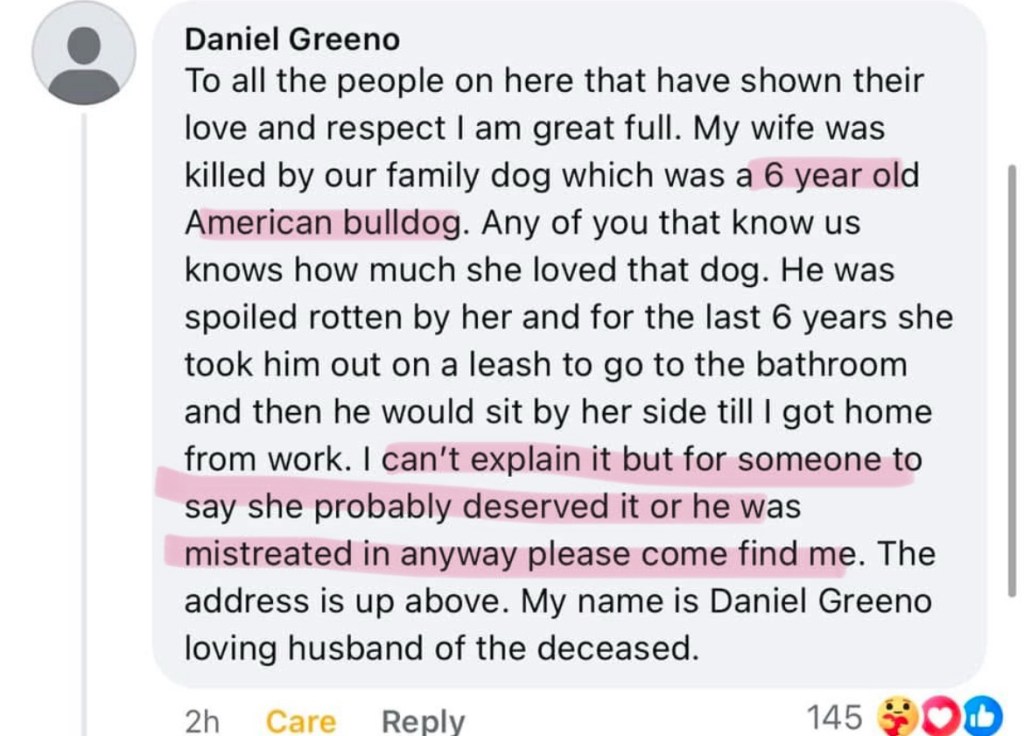 And yet, that dog fatally mauled her in her own home, ending her life in a gruesome and tragic way.