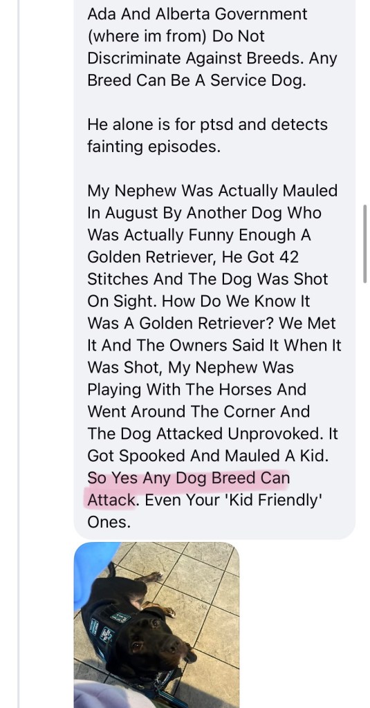 Bringing in โgovernmentโ and โservice dogโ status is meant to project authority and credibility. But we know service dog status is not proof of safety as even โcertifiedโ dogs have attacked. Itโs a psychological strategy to silence criticism, not evidence that pit bulls are low risk.