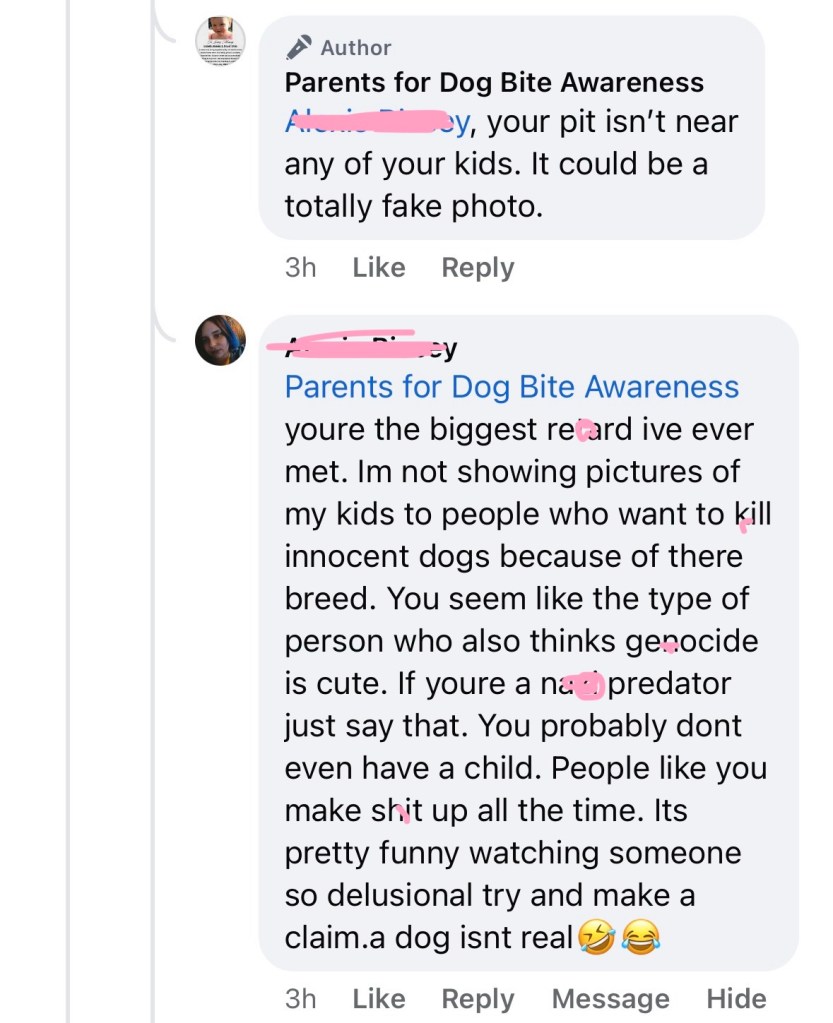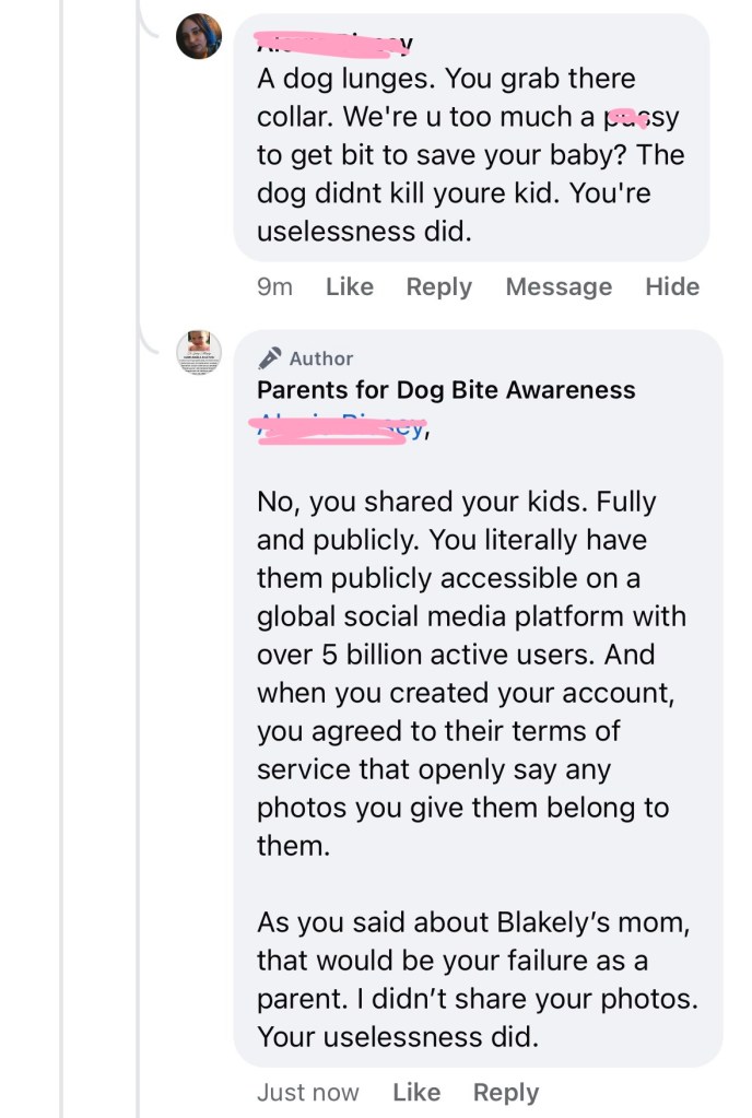 💔 If a parent shares a factual post about fatal dog attacks, this is typical of the responses they get: