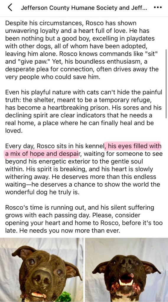 Every adoption has real risks. Every bite, aggression incident, or mismatch in a home can have life altering consequences for the dog and the people involved. Don’t just scroll and “like.” Ask the questions. Demand the answers. Protect your community and the animals you care about.