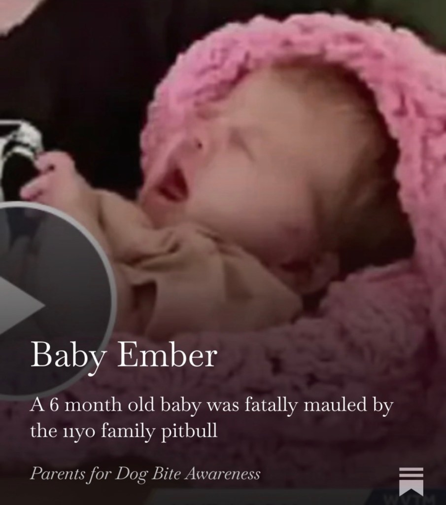 Baby Ember was being watched by her great grandmother, whose identity was never officially confirmed. This is an aspect of the bloodsport dog topic that needs to legally change. Violent crimes against persons should be equally reported on, whether they are domestic violence, aggravated assault, or maulings. 📝