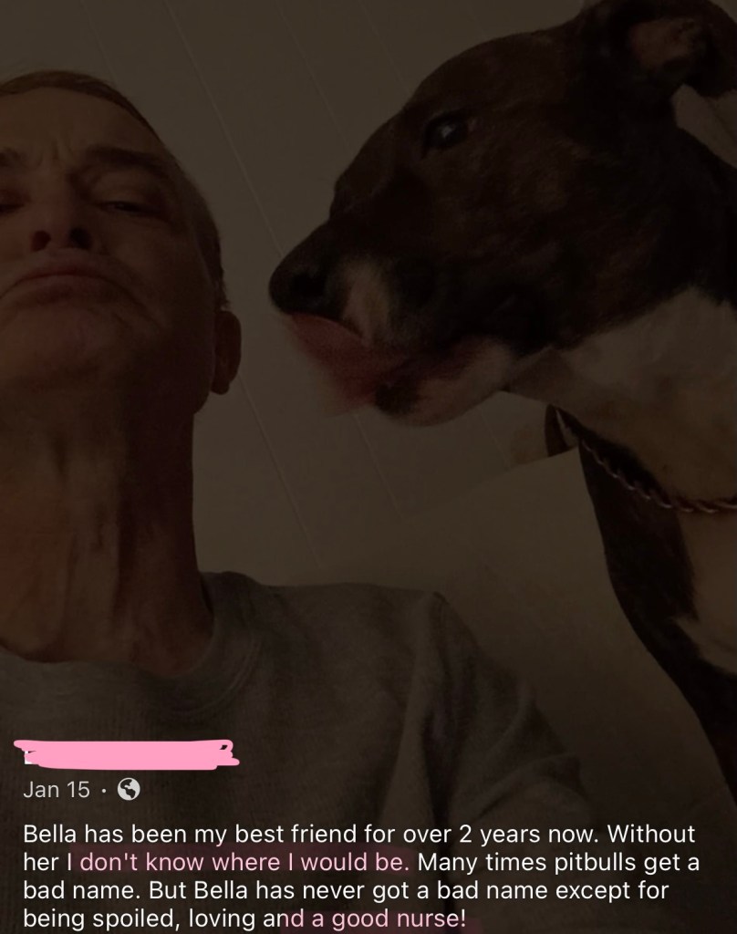 Notice that despite the adamant comment, the owner’s public photos immediately contradict his words. He’s using his dog emotionally, we have the #blurry cognitive red flag, poor cues from the pit, and it’s about 2yrs old so there is no way to predict the near future outcome, let alone the age 7-10 attack peak. He’s also unethically calling his dog a service dog.