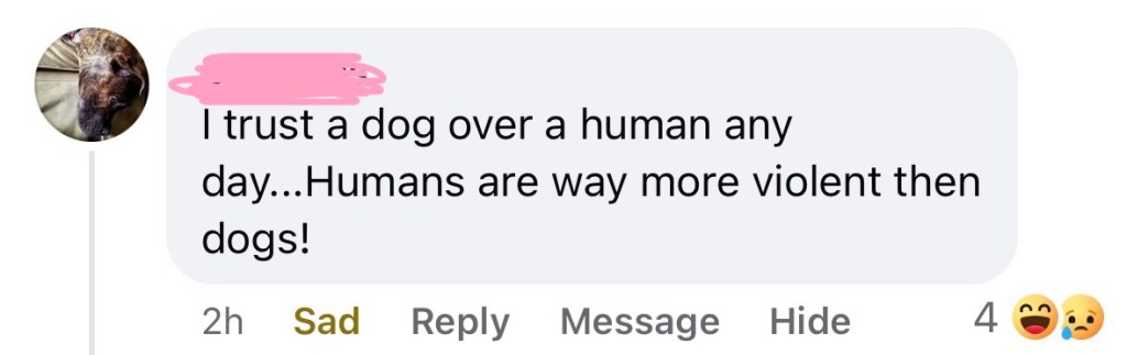 It’s usually posted under stories about severe dog attacks, especially those involving bloodsport dogs. And on the surface, it sounds poetic, a little wounded, a little rebellious.