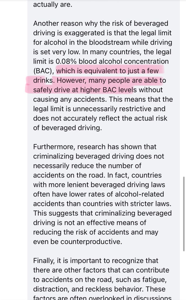 The claim that criminalization is “ineffective” ignores the fact that regulation doesn’t guarantee perfection. Sobriety checkpoints, BAC limits, and licensing reforms have saved lives.