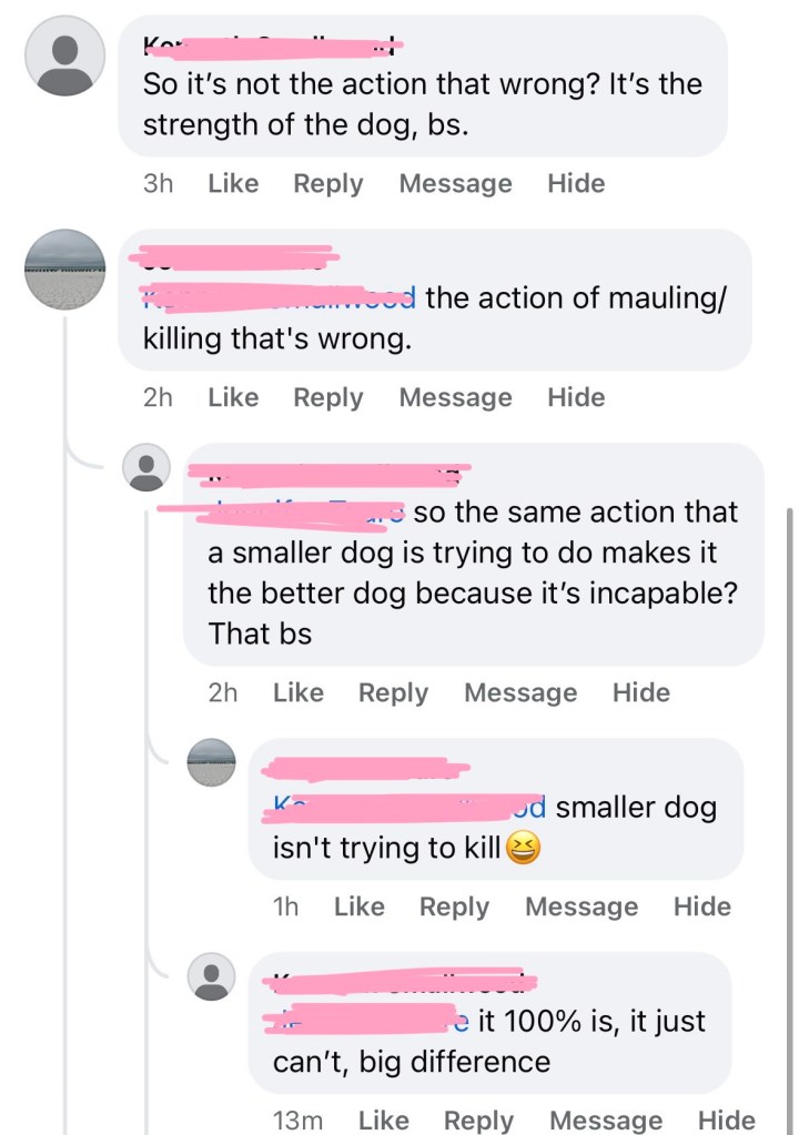 This reframes the debate into a moral one instead of a risk and public safety one. It’s a tactic used by people who feel judged. If pits are dangerous, Kenneth feels like he is being judged (identity fusion), so he shifts the frame to morality to make the criticism seem unreasonable.