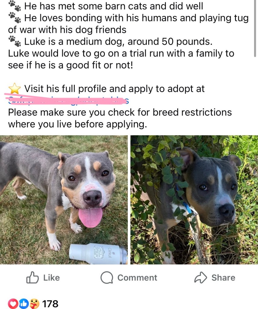 It also strategically obscures the reason the shelter considered euthanasia, which was likely high risk behavior. They fail to explain why he was next on the list.
